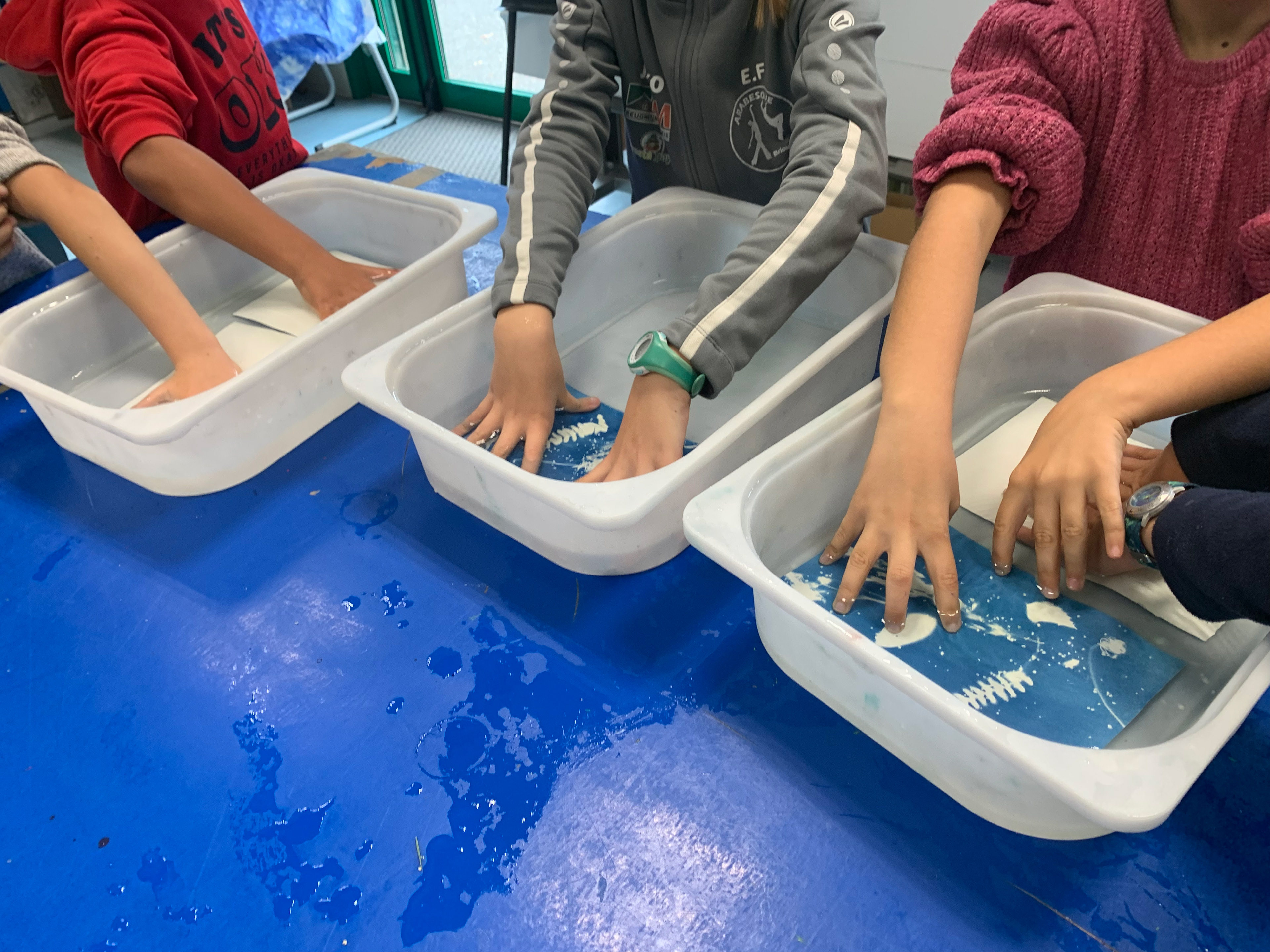 La classe de CM1-CM2 s’est concentrée sur le thème du vivant et de la représentation du réel. Les élèves ont exploré plusieurs procédés, tels que le cyanotype et le révélateur argentique à base d’ortie.