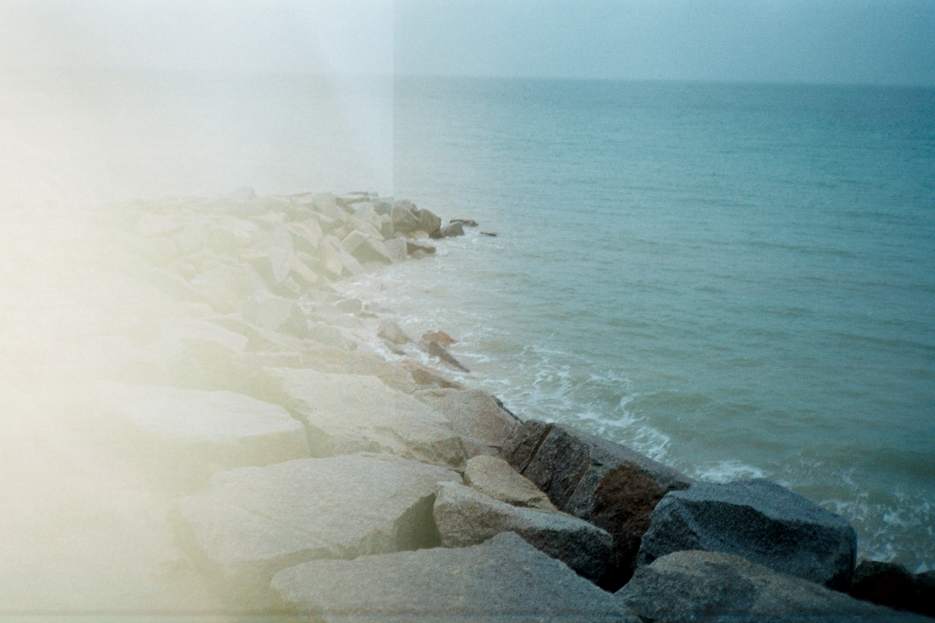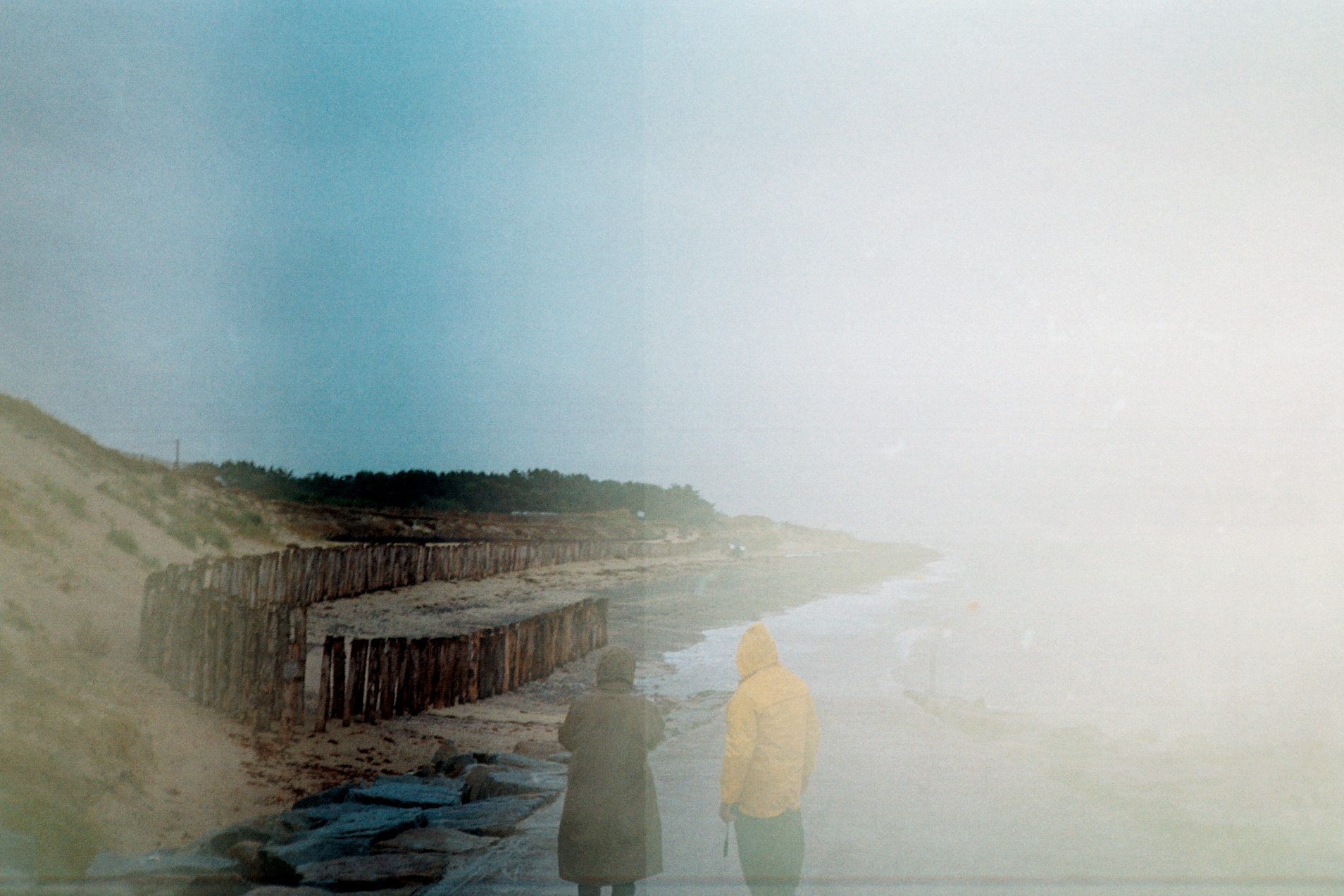 Quatre personnes détenues ont eu l’autorisation de sortir sur l’estran, à Agon-Coutainville. Des vieux appareils argentiques, des appareils jetables, des pellicules périmées ont été utilisés pour créer un univers visuel. Ce jour là, il pleuvait.